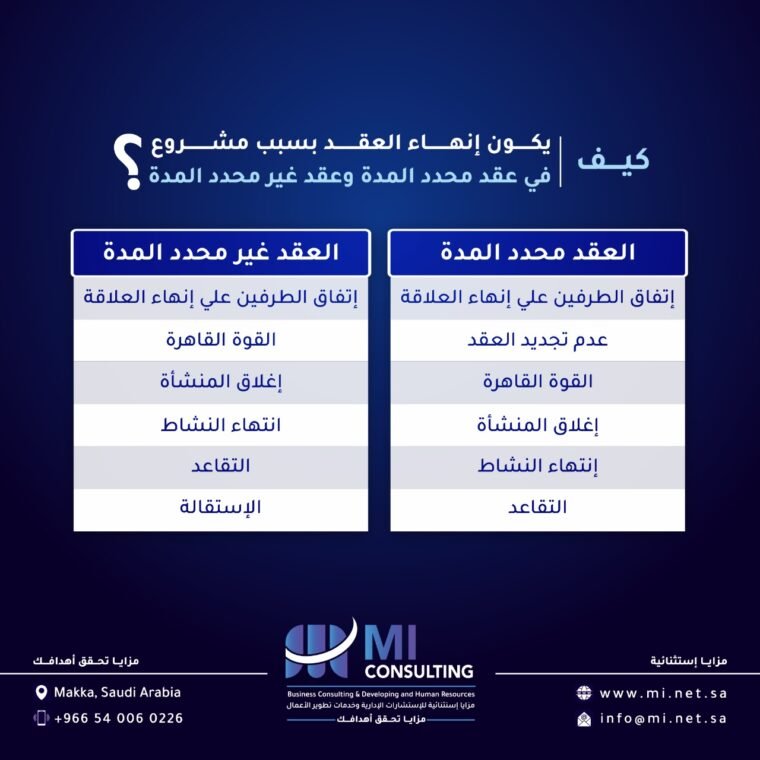 إدارة العقود بحكمة تساهم في تحقيق الاستقرار بين الأطراف وتوفير بيئة عمل قائمة على التفاهم والشفافية. سواء كنت صاحب عمل أو موظفًا، تأكد من معرفة شروط عقدك وكيفية إنهائه لتجنب أي تعقيدات مستقبلية.